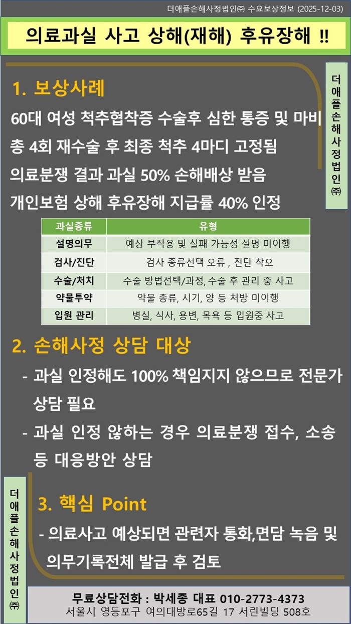 ♡ 의료과실 사고 상해(재해) 후유장해 !!