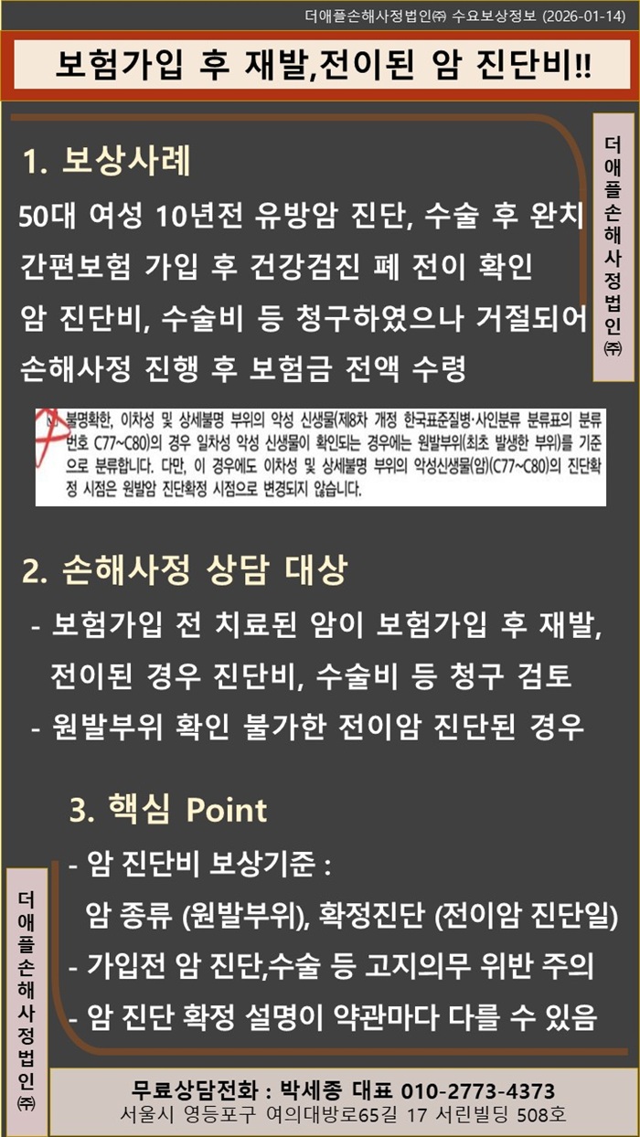 ♡ 보험가입 후 재발,전이된 암 진단비 !!