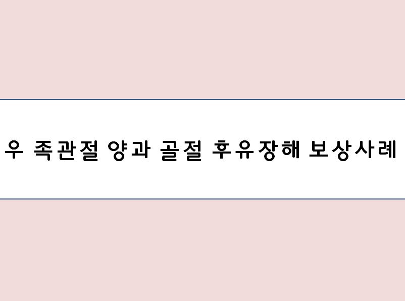 우족관절 양과 골절 후유장해 보상사례 피보험자는 남산 산책길을 걷다가 넘어지면서 우 족관절 양과 골절로 관혈적 정복 및 내고정 시 행하였으나 우 족관절 동통 부전강직이 지속되어 ...