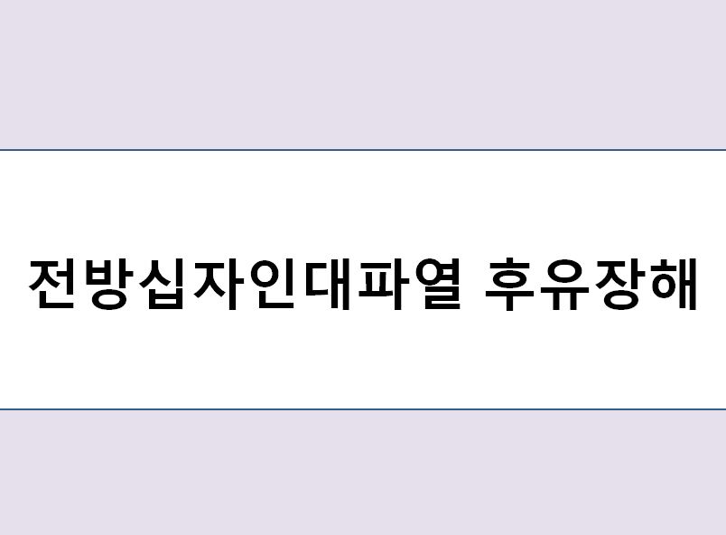 전방십자인대파열 후유장해 보상해결사례 전방십자인대파열은 스포츠 활동 중에 가장 쉽게 부상이 발생 할 수 있는 부위로 환자분 또한 농구 시합을 하던 중 십자인대파열 부상을 ...
