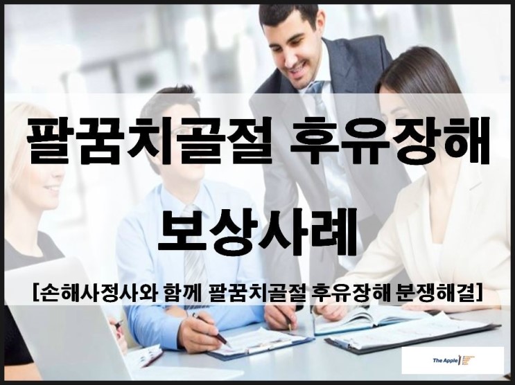 팔꿈치골절(주관절골절) 후유장해 보상사례 [손해사정사와 함께 팔꿈치골절 후유장해 분쟁해결] 안녕하세요~더애플손해사정입니다이번시간에는 팔꿈치골절 후유장해보상사례에 대해 소개해 드리...