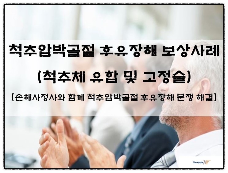 [손해사정사와 함께 척추압박골절 후유장해 분쟁해결] 척추압박골절 후유장해 보상사례(척추제 유합 및 고정술) 안녕하세요~더애플손해사정입니다이번시간에는 척추압박골절 후유장해보상사...